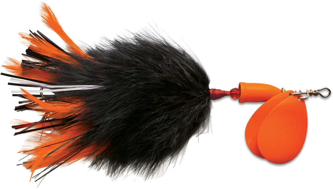 Blue Fox Vibrax Super Bou Twin Blades is a large inline spinner designed to attract muskie and withstand their fierce, toothy strikes. This lure combines marabou, hackle and flashabou fibers to create an undulating action that makes the bait look alive. This spinner is built with durable stainless steel to handle powerful muskie strikes. Equipped with premium VMC hook and durable stainless steel through wire construction. The size 8’s small sleek design is rigged with one hook and is great for burning over shallow cover. The two treble hook size 10 has a larger profile body which emulates mature bait mid-season. Available in 7 colors.