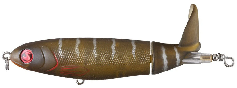 The River2Sea Larry Dahlberg Whopper Plopper 130 Silent is the culmination of many years of fine tuning a specific style of lure. Since they are molded, every single one comes out of the box with the perfect tail size and angle to make a sound that simply drives fish crazy. Its tail is made of super tough plastic that flexes right back into place whether it gets chomped on or gets cast into a bridge piling. The River2Sea Larry Dahlberg Whopper Plopper 130 Silent is “roll resistant” and works well at a variety of speeds. Sound experiments have suggested that even at constant speeds the tail kicks out sounds that vary as much as an octave in pitch as opposed to the more monotone metal tails.