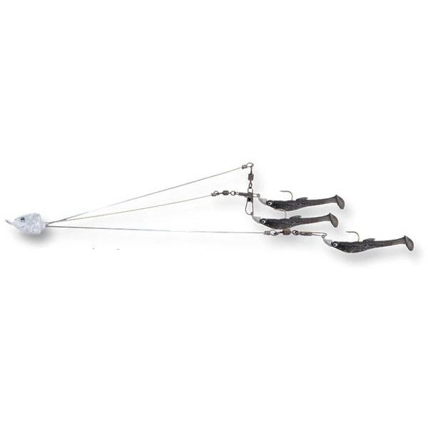 The Castaic Jerky J School Rig allows fisherman to catch more bass. When bass school offshore, they often form in groups of hundreds of fish. Being the opportunistic predators they are, bass will attack schools of minnows and the Jerky J School Rig looks just like a school of minnows. Cast the Jerky J School Rig, count it down to the correct depth and hang on! During testing it was very common to catch multiple bass on one cast. Even 5 bass have been captured on one cast!