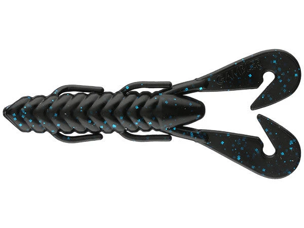 The Gambler Burner Craw is another versatile craw bait from Gambler Lures. This bait has been designed to be compact to go through the thickest of mats and grass. The round beefy body is perfect for holding a large flipping hook and helps keep the point of the hook from hanging up. This results in more efficiency when punching heavy cover. No need to continually be re-rigging and grabbing a new bait because the point of your hook is catching on cover. The tail section has two aggressive action arms that put out a non stop vibration that fish can really key in on. Don’t forget to try the Gambler Burner Craw on the back of your jig either.