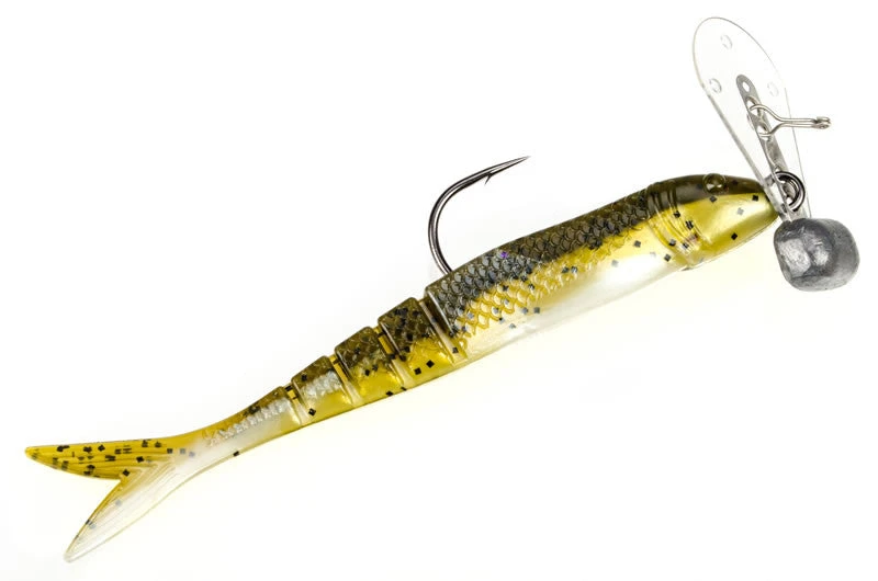 The Strike King Tour Grade Naked Rage BladeΒ has a unique design that increases hook ups and decreases snag ups compared to other designs. It comes with a clear blade for use when no flash is desired and/or in clear water conditions. Instead of a skirt, it is pre-rigged with Strike King’s new Blade Minnow body on a custom Gamakatsu hook.