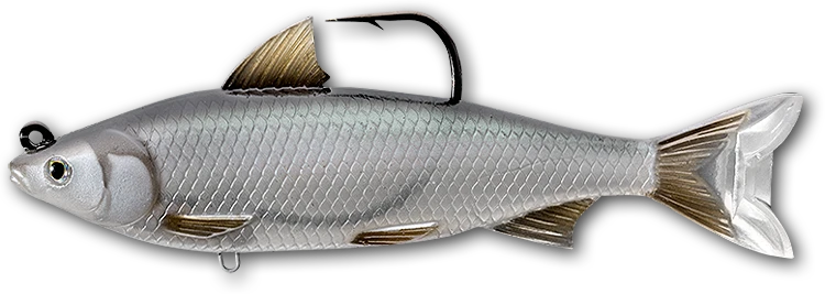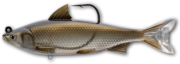 Since hitch live in the same parts big bass do, they are highly likely to be the recipients of their predatory attention. Take advantage of that and lure a strike with the large protein-packed morsel that is the LIVETARGET Hitch Soft Body Swimbait! This swimbait is a perfect anatomical hitch model with an oscillating tail design that offers side-to-side motion that “hitches” predators up like no other. It enjoys a greater hookup ratio thanks to its lethal wide gap hook and is designed to be weedless to penetrate heavy cover. It also has an accessory pin for adding hooks or spinner blades when desired. Available with a medium-slow sink rate in 2 colors and 2 sizes, the LIVETARGET Hitch Soft Body Swimbait is the hitch which these predators itch to bite.