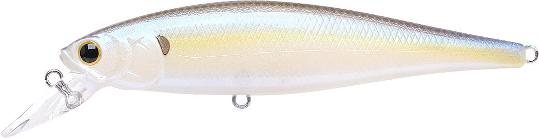 The Lucky Craft Pointer 100 is a 4 inch, suspending jerkbait that has been designed with a very low center of gravity through the use of special brass weights. The low center of balance causes the lure to wobble and vibrate whenever the retrieving motion is stopped. The Lucky Craft Pointer 100 will suspend 4 -7 feet deep depending on line size and type and will emit an intriguing bass-calling vibration, while in the suspended state. A short twitch of the fishing rod will generate the “Walk-the-Dog” action under the water. When you’re searching for fish, the Lucky Craft Pointer 100 is the go to jerkbait. And with so many color options, this is one bait no serious angler should be without!