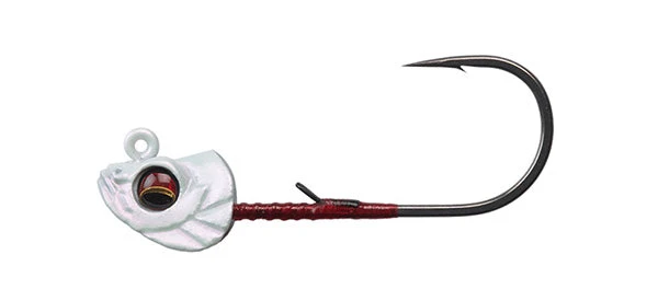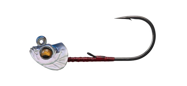 - Megabass Okashira Jighead is an extremely realistic swimbait jig head.