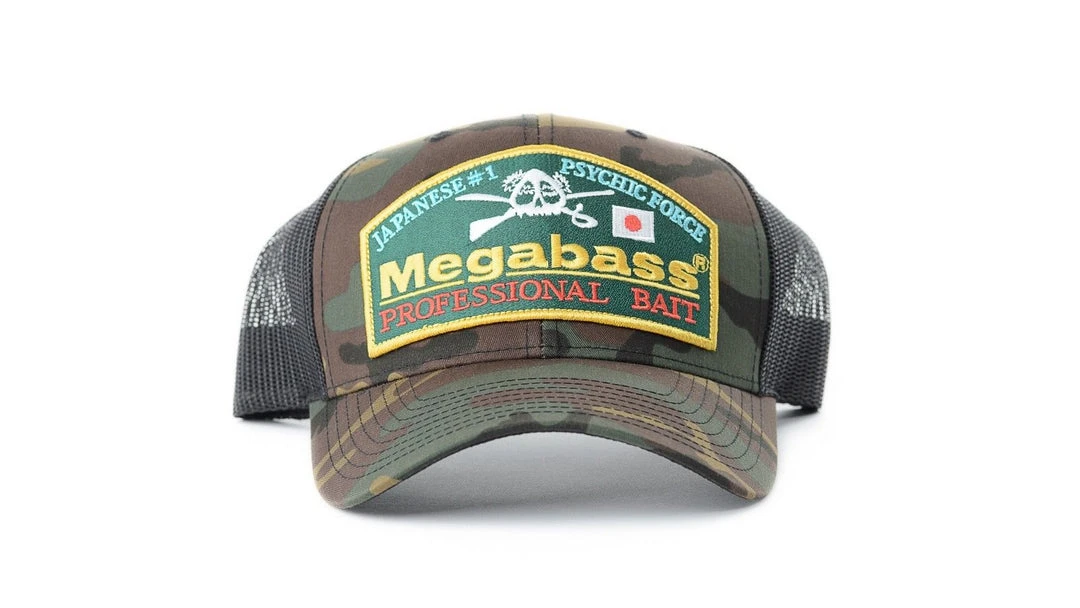 The Megabass Throwback Trucker Hat is a mid-profile trucker style hat with a great retro look. Bringing back the iconic Megabass embroidered patch from the 1980’s, the Throwback Trucker features a traditional woodland camouflage pattern inspired by Chris Zaldain’s custom tournament design. Megabass snapback trucker hats are available in a mesh, structured poly/cotton build for the best in breathability, comfort and style. One size fits all adjustable hat, please note that the hat’s visor comes pre-curved.