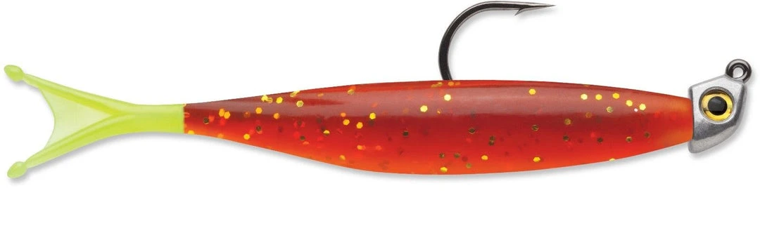 - The Storm Trick Tail Minnow w/ Jig is a 5 inch soft plastic swimbait pre-rigged with a 1/4 ounce jig head.