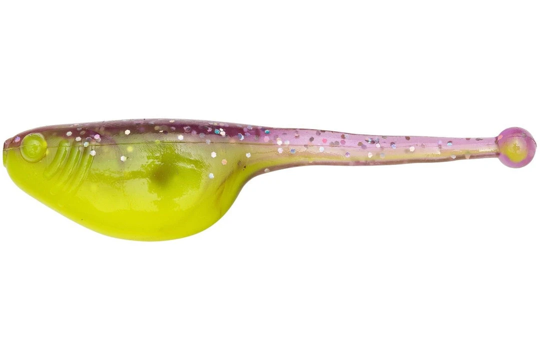 - Its 2-inch body produces darting action like a threadfin shad and squiggling tail like a tadpole.