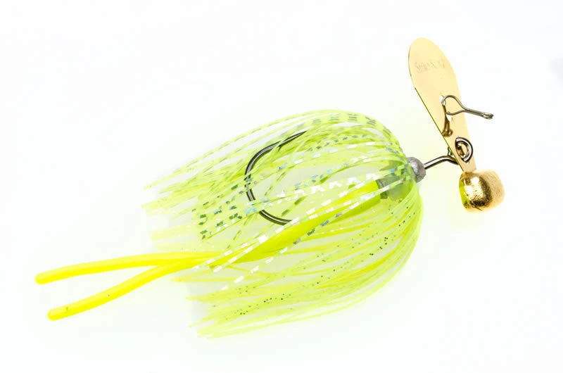 The Strike King Tour Grade Rage Blade has a unique design that increases hook ups and decreases snag ups compared to other designs. It comes with a custom Gamakatsu Hook, Twin Tail Trailer and Perfect Skirt.