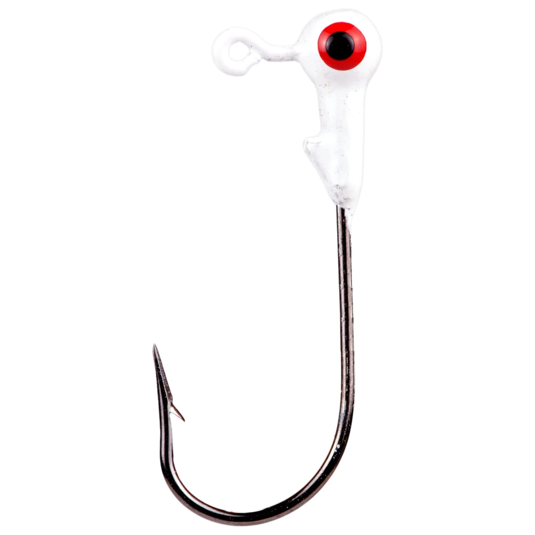 Strike King Mr. Crappie Jigheads are small, round lead head panfish jigs that come painted or unpainted, with painted models featuring a painted eye on the head. The jigs are built around a #2 Eagle Claw LaZer Sharp platinum black hook, ensuring easy penetration and dependable hook sets. Great for both vertical jigging, casting, and trolling on spider rigs. Available in 6 colors and 3 weights: 1/32 ounce, 1/16 ounce, and 1/8 ounce.