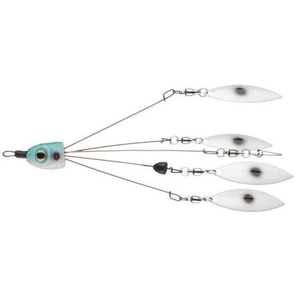 The Z Man Quadzilla 4 Arm Spinner Rig uses a durable multi-arm design that ads volume and creates the illusion of a small baitball. However, unlike most umbrella rigs, the Z Man Quadzilla 4 Arm Spinner Rig is incredibly light, which means that it is easier to fish in shallow water and reduces fatigue after a long day of fishing.